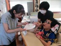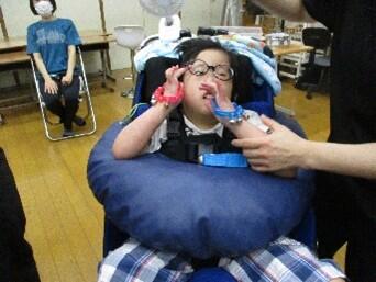 『水を使った学習』では、初めて大プールやビニールプールに挑戦できた人も多数いました。水の冷たさや心地よさを感じて笑顔がたくさん見られました。