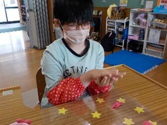今年度の重複障がい学級運動会は「★みんながみんなヒーロー★」をテーマに取り組みました。当日は胸に手作りのヒーローマークをつけて参加しました。