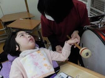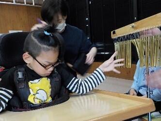 音楽『自由な表現を楽しもう』『リズムを楽しもう』では、たくさんの楽器に触れたり身体表現を楽しんだりしました。今まで見たことのない珍しい楽器に触れ、嬉しそうな表情が見られました。
