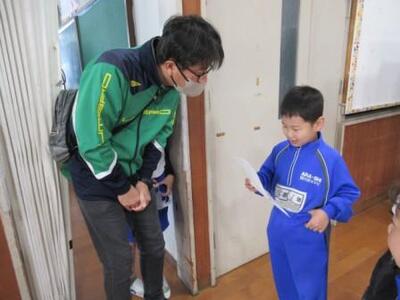 当日は絶好の天気。気合の入った表情でスタートしました! みんなの応援が力になります。きついけど頑張るぞ! カウンターを使って周回数を確認。ラストスパートだ! 終了後、記録書をもらいました。みんな頑張りましたね!