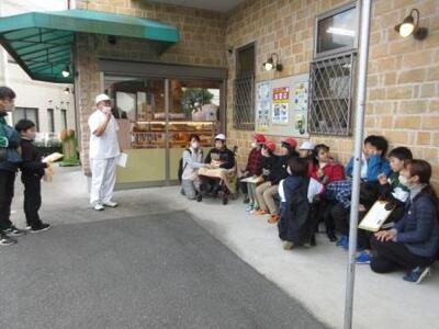 3年生。教わったコツを実践して、丁寧に梨を収穫しました。 3年生。自動車販売店では、修理点検の様子を見学しました。 4年生。パン屋ではたくさんの質問に丁寧に答えていただきました。 4年生。調理体験。大きな鍋で調理するのは大変な仕事だ!