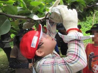 1日目は「横島総合保健福祉センターゆとりーむ」の温水プールに行きました。流れるプールに子ども達も興味を持って、浮かんだり、流れに逆らって歩いたりと、楽しく活動することができました。ゆとりーむでの活動後は、歩いてスーパーに行き、夕飯のカレーの材料を買いました。自分で財布の中の硬貨を取り出し、支払いをして、おつりとレシートをスムーズに受け取ることができ、学習の成果を感じました。草枕山荘ではカレーを作り、夕日の見えるデッキで食べました。みんなで楽しく作り、笑顔で食べるカレーはとても美味しかったです。その後ナイトハイクを行い、暗闇の中、懐中電灯を灯しながらスタンプラリーをしました。途中、仮装した職員が登場し、みんな驚いたり、喜んだりしてとても盛り上がりました。1日目はたくさん活動したこともあり、みんなぐっすり寝ることができました。2日目のミカン狩りは残念ながら雨天のため中止になりましたが、みんな最後まで大きな怪我や病気をすることなく、元気に活動することができ、とても充実した宿泊学習になりました。