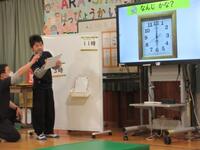 私は、楽譜を見ながら鍵盤ハーモニカで演奏できるようになりました! 練習中の1コマ。とても上手にできて、子どもも先生も大喜び!自信が付きました。 劇仕立てでの発表。友達と協力して、調べたことを発表しています。 時計が読めるようになりました。大勢の人たちの前でも、平常心で発表できました。