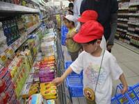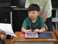 音を選んで楽譜にして、タブレットを操作して演奏しました。 色付けした紙粘土を画用紙にぬって表現しました。楽しい! 夏の体育はやっぱりプールですね!みんなの笑顔が満開です! 1年生の買い物学習。レジでの支払いも1人でできるんです!
