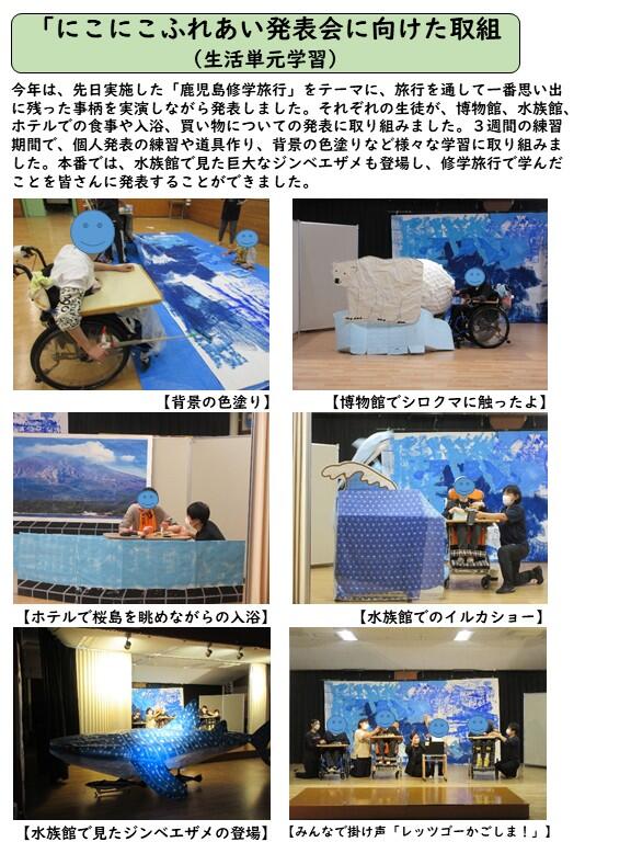 「にこにこふれあい発表会」当日は、それまでの活動の様子を映像と実演でステージ上で発表しました。