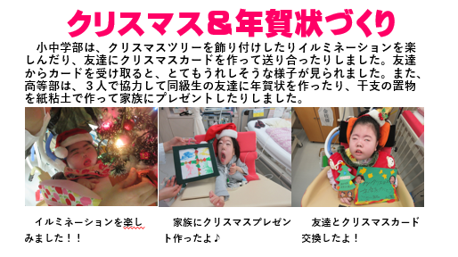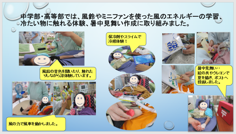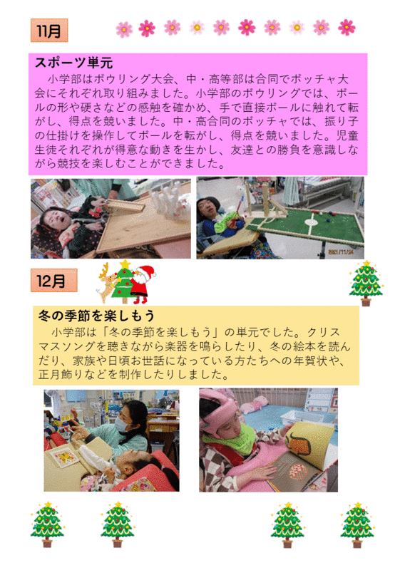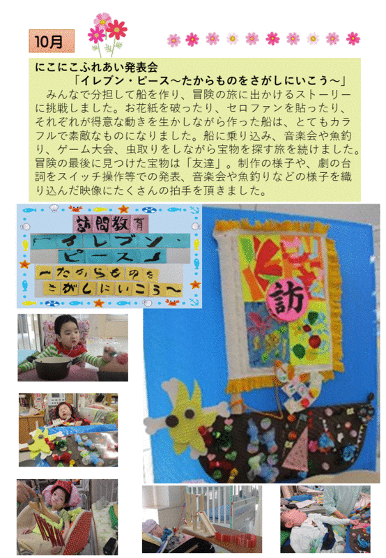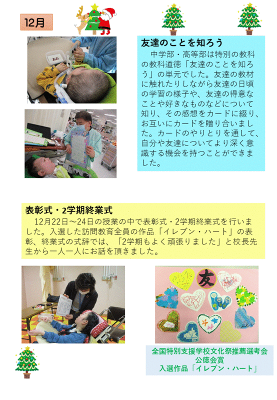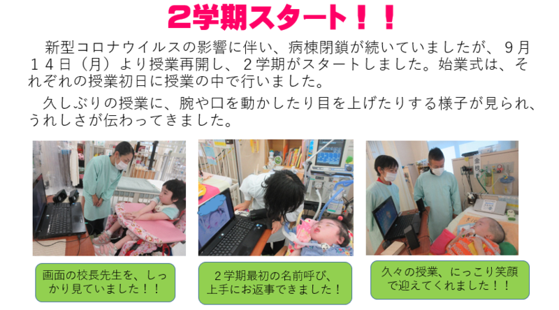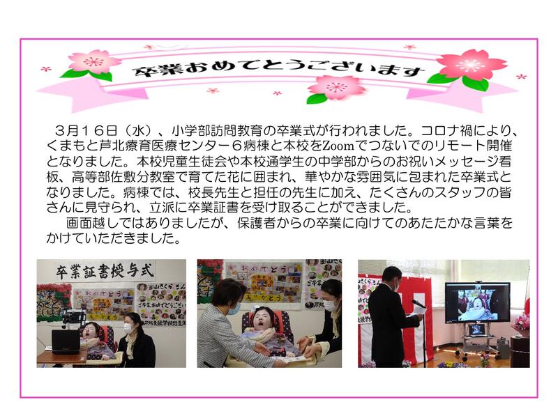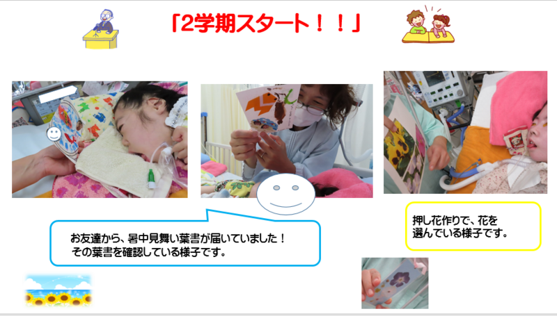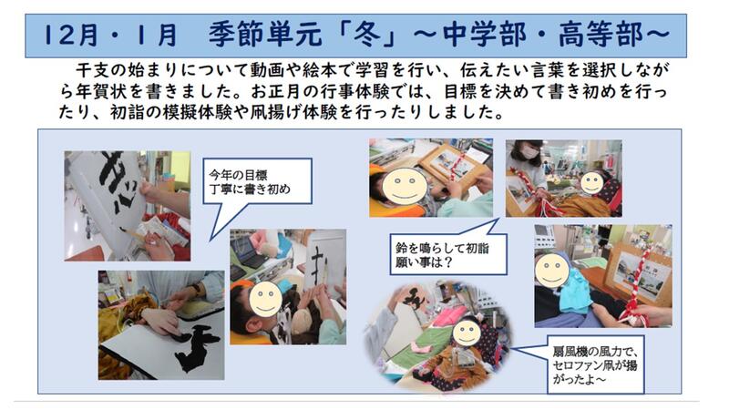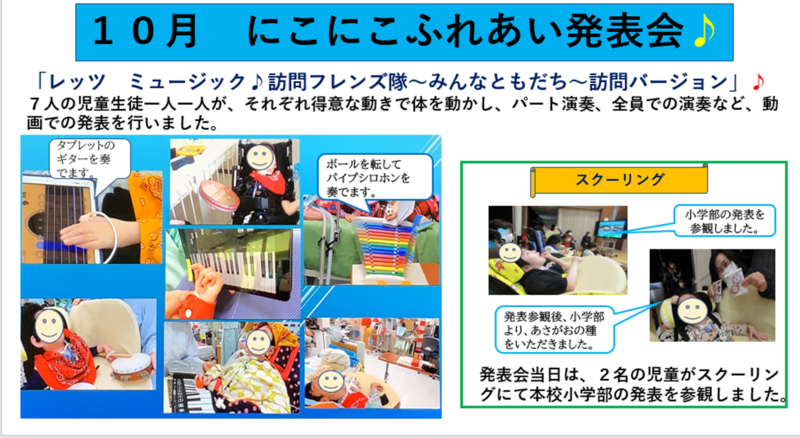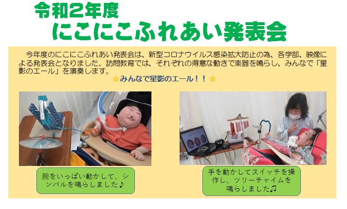令和3年度の訪問教育は、小学部、高等部に1人ずつ新入生を迎え、小学部6人、中学部2人、高等部2人、計10人で1年間頑張っていきます。