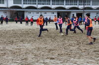 泥だらけになりながらボールを追いかける姿は迫力満点。鮮やかなゴールが決まるたびに、クラス全員が飛び跳ねて喜んでいました。 1点を守り抜くために、声を掛け合いながら鉄壁の守りを見せるクラスもあり、担任の先生も熱狂しながらコートサイドでは身を乗り出して応援する姿もあり、クラスの絆がより一層深まったようです