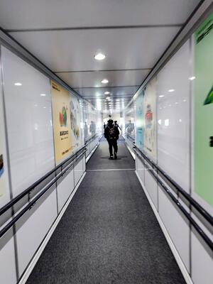 一歩進むごとに、日常が遠ざかり、空の旅が近づいてきます。