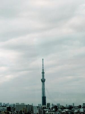 そんな中、霞む冬空を突くようにして現れたのは、巨大なスカイツリーの姿でした。
