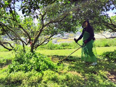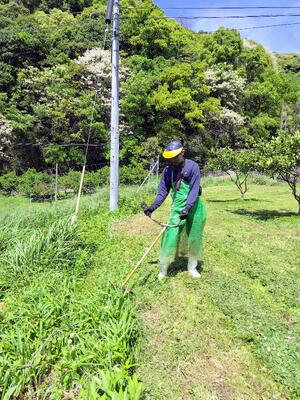 本日は3年農業科の「果樹実習」として、果樹園の草刈りを行いました。