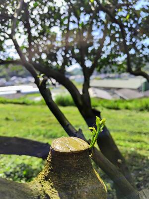 主幹部からも勢いよく新芽が芽吹き出し、いよいよ春芽が本格的に動き出す鼓動を感じます。