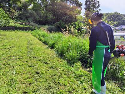 刈り払い機を自在に操る3年生の背中は、頼もしさを増していました。