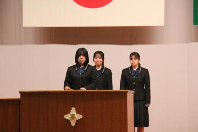 生徒代表あいさつでは生徒会副会長の平松君があいさつをしました