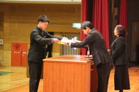 11月28日(金)、「令和7年度熊本県がんばる高校生表彰式」が熊本県庁本館地下大会議室で行われました。本校からは井川くん(福祉科3年)が受賞し、木村知事から賞状を授与されました。