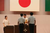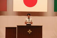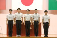 学校長からの激励の言葉に続き、主将の下田君から意気込みの発表があり、「日本一を取りに行きます」という力強い言葉があり、「13年間の集大成」という個人の熱い思いも込められていました。