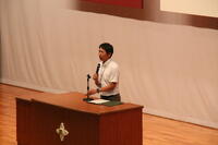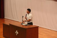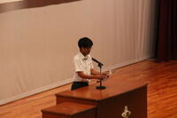 弁論大会の様子ですテーマ「私が思う幸せ」で各学年の予選を勝ち抜いた生徒に発表してもらいました
