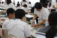 ハーバリウムは初めて作る中学生が多く、優しい高校生に教えてもらいながら作っていました