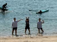 オリエンテーションの後は海水浴場でマリンアクティビティを体験しました。