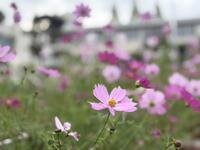 校門のプランターの花も植え代わり秋桜が咲き乱れています