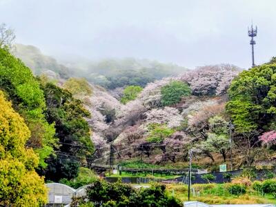 視界の端では、裏山を鮮やかに染める桜の薄桃色が、春風に優しく揺れています。