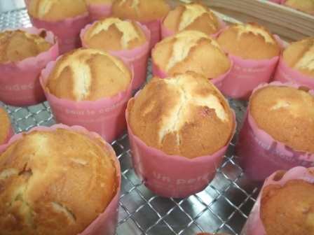 待つこと約30分...。オーブンから出てきたのは、こんがりときつね色に焼けた丸いケーキたち!教室中に甘くていい香りが広がります