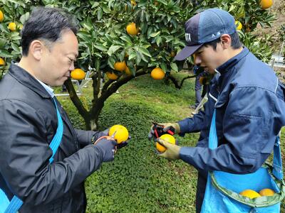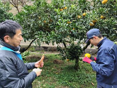 実習中の彼らの背中を見ていると、この地域の特産品である柑橘を守り、繋いでいくという力強い意志を感じます。