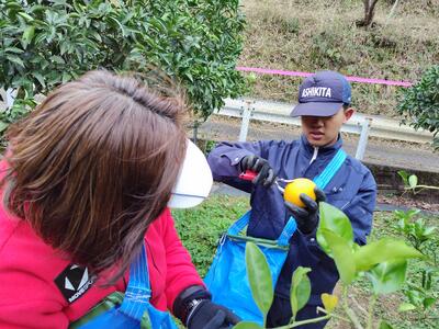 わが校の果樹園では、一年で最も活気あふれる「不知火(しらぬひ)」と「甘夏」の収穫実習が行われました
