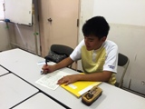 さっそく、「点字盤」を使って、チャレンジ