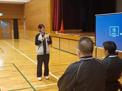 先輩が利用者役になって、1年生が考えたレクリエーションを体験します。