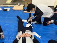 病気やケガをした人に対し、正しく救助して医師に渡すまでの救急処置の知識や技術を学びました。
