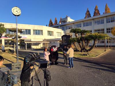なんと、芦北高校への帰着時には、熊本県の人気者、くまモンも登場し、生徒たちの学びの場を応援してくれました