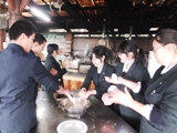 まずは新鮮な卵を一つひとつ丁寧に割っていく実習から。みんな真剣な表情です!お菓子作りは、この基本の実習から始まります。