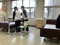 先日、放課後に福祉科の実習室を覗くと、実技テストに向けて1・2年生が練習をしていました。