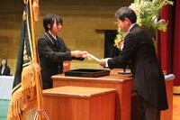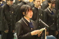 新入生代表による誓いの詞では、地域みらい留学を通して本校を知り、入学してきた1年林業科の蒲生さんが