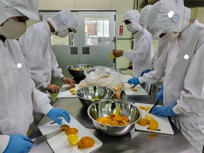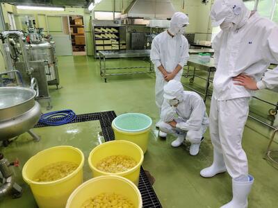 あいにくの雨となった今日、実習室では2年生による「食品製造」の実習が行われました。