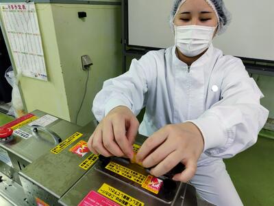 検定を行い、一玉一玉を優しく拭き上げ、キャップを被せ、仕上げのシールを丁寧に貼っていきます。