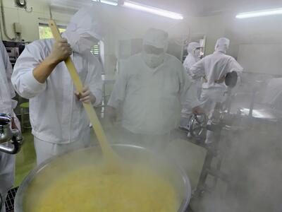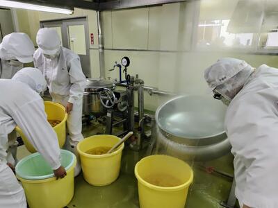 その後、じっくりと熱湯で煮詰めていきます。次回はいよいよ仕上げの予定です。