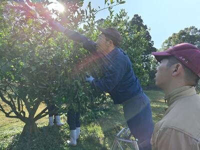 私たちが巡回指導に伺った時、生徒たちはちょうど「不知火(しらぬい)」という柑橘の収穫実習に取り組んでいましたひらめき