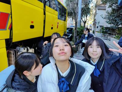 予定の午前7時よりすこし先に。大型バスのエンジンが重低音を響かせ、ゆっくりと校門をあとにします。
