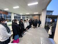 バスを降りた瞬間、生徒たちを迎え撃ったのは、海沿い特有の激しい潮風でした。