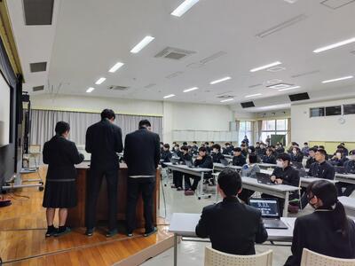 キーンと冷えた冬の空気を震わせるように、2年生75名が体育館へと集まってきました。