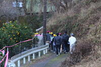 まずは実施場所である学校裏の峰崎農園に登っていきます