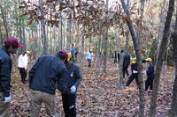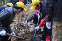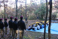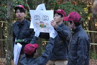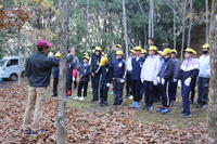 操縦を行っている生徒以外は地元の林業研究グループの方々から間伐のノウハウを教えていただきます