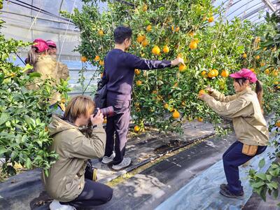 本校の果樹部門で大切に育ててきた「不知火(しらぬい)」の、宣伝用写真の撮影です。