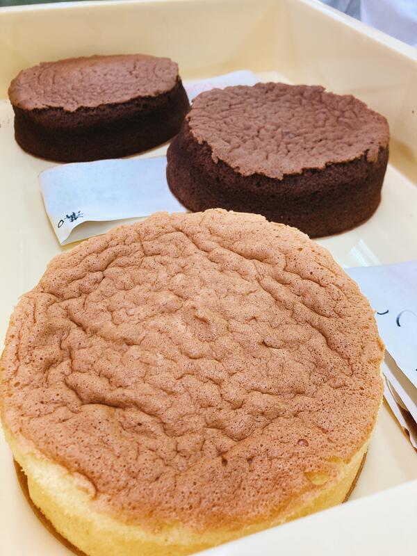 スポンジケーキは全卵を泡立てる共立て法でふんわり焼き上げました。