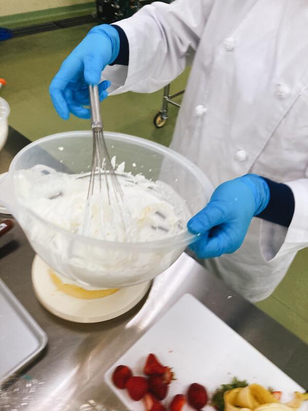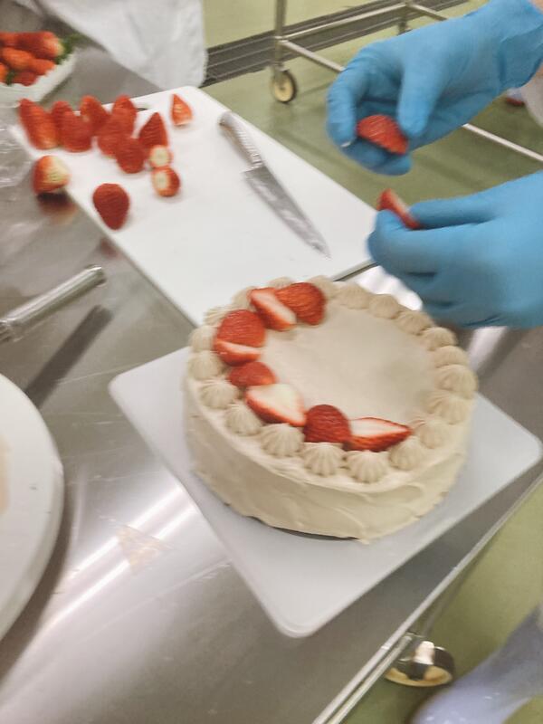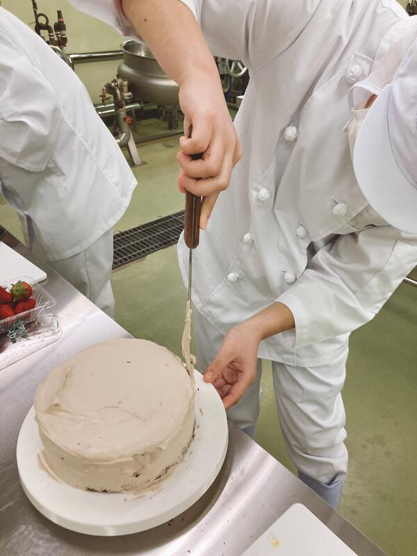 農業科2年生「食品製造」の授業で『デコレーションケーキ』を作りました。