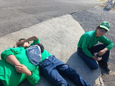 農園のほうでは、違う班が昼寝中…いやいや実習の合間の休憩中でした。暑い中にハウスの中での実習だったんでしょうね。お疲れ様です。明日は、本校を会場に初任者研修(教諭1年目の先生方の研修)が行われます。(K)