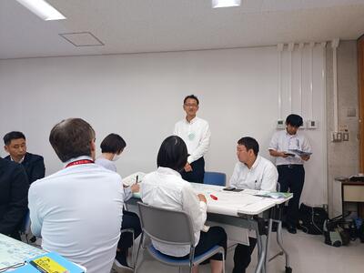 中学生の皆さん、(一財)地域・教育魅力化プラットフォーム事務局、芦北町、芦北高校職員みんなでオリエンテーションをおこないました。自己紹介とちょっとしたアイスブレイクで少し場が和んできたところで、学校見学と農業科と林業科の製作体験に移りました。