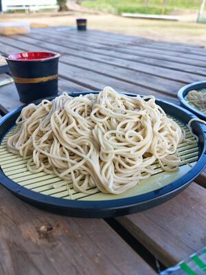 そう!大野と言えば「そば」ですね!(そうではないかもしれませんが…)私も何度かお邪魔したことのある「りんどう」さんが出張サービスでおそばを出してくれました。おしゃれに言うとケータリングですね。