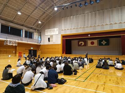 明日は、長距離走大会が開催されるため、全校終礼をおこない、コースの説明や留意点など話がありました。